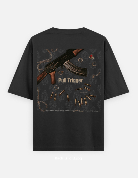 The dark base combined with the detailed graphic and “Pull Trigger” text creates a powerful visual — designed for those who move with confidence and aren’t afraid to stand out.